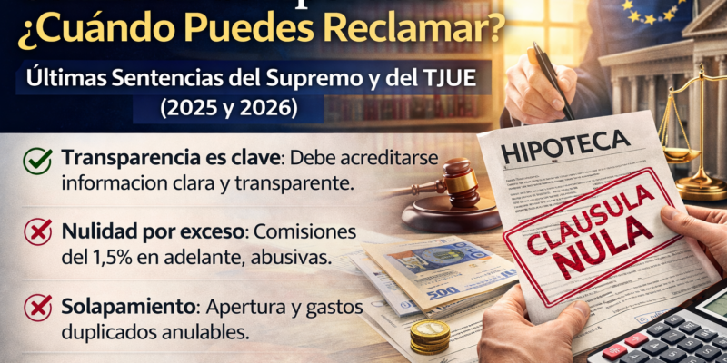 Sí, se puede reclamar, pero no con una fórmula automática. Lo que hoy están diciendo los tribunales es que hay que revisar la escritura y la documentación previa para comprobar si la comisión supera los controles de transparencia y abusividad. El Supremo insiste en que el análisis debe hacerse “caso por caso”, y esa es precisamente la base de muchas reclamaciones viables.